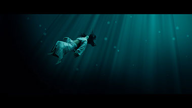 水中は、AEで制作、髪の毛だけ扇風機に当てた映像をスローで撮って女優さんの頭に貼り付け。